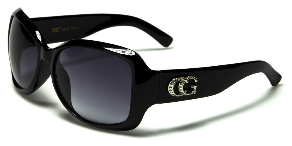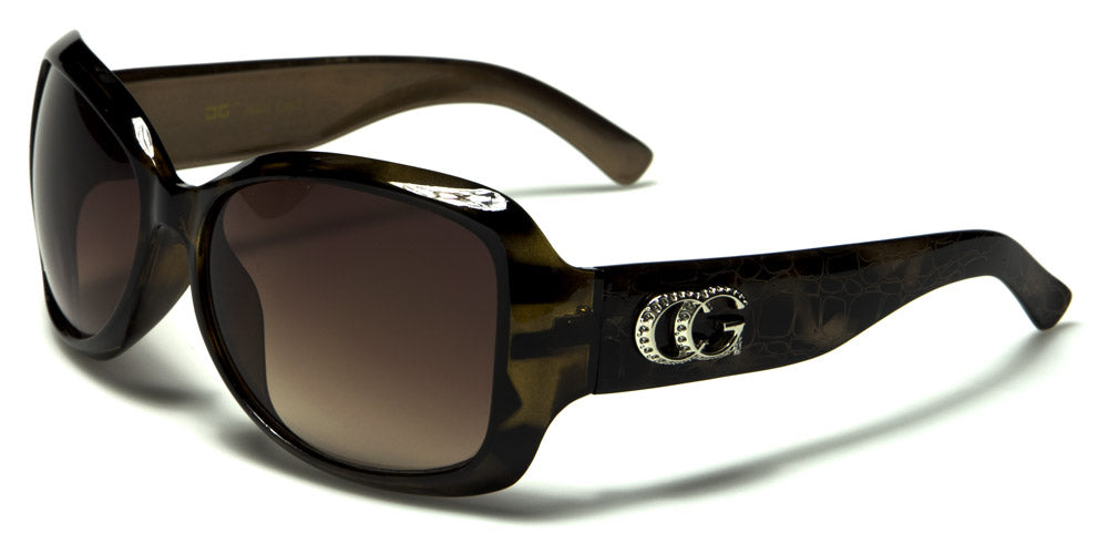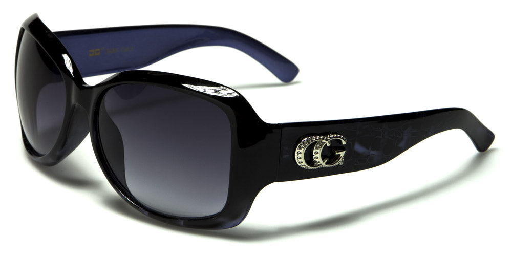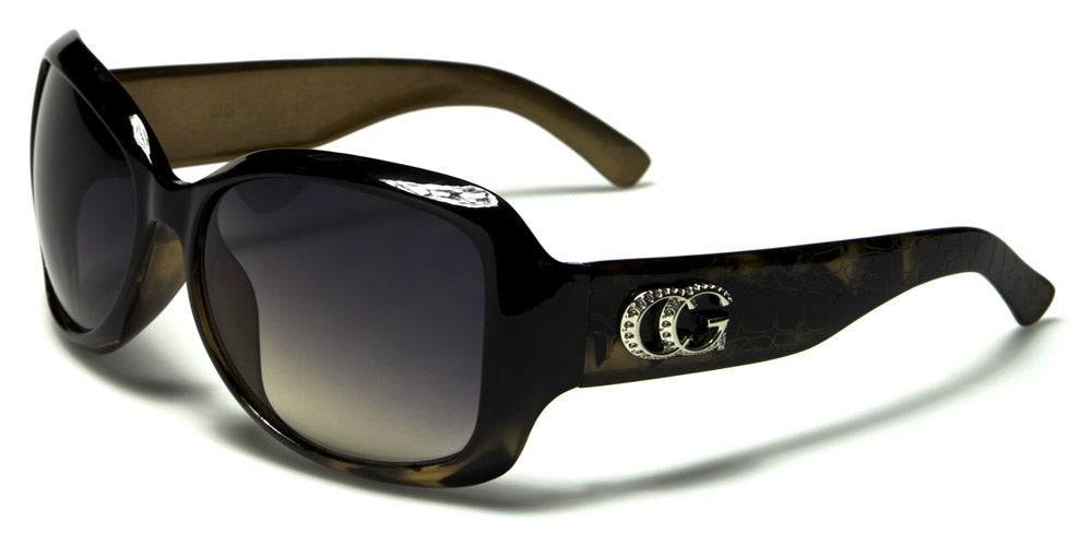 These CG bulk sunglasses for women are all the rage this season. These designer, upscale sunglasses feature oval butterfly style lenses and come in a wide selection of colors and animal prints. Made of durable, high-quality plastic, these pre-molded sunglasses feature comfortable sunglasses and curved earpieces, which make them comfortable for perching atop the head. Additionally, the temple is highlighted with a blingy, small rhinestone studded CG emblem that is sure to garnish head turning looks. These sunglasses are available in quantities of one dozen with mixed assorted colors, including a mixed variety of black, burgundy, brown and blue, to name a few.