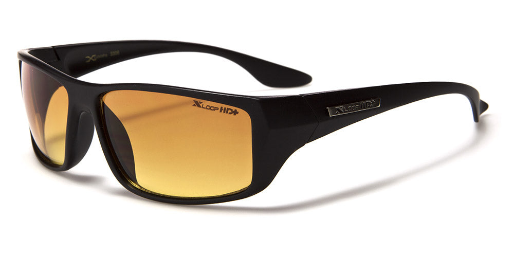 Driving glasses by X-Loop look cool and work well. The HD lenses have an amber finish that is made to make the colors appear more vivid and let you drive without missing anything important that you need to see. The frame is made of plastic, shaped to fit and is lightweight enough to be comfortable on long road trips. The arms have a gentle curve at the ear and show off the X-Loop logo on the side. Buy these great shades in bulk for excellent savings.