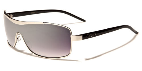 Rectangular sunglasses with a rounded look and feel, these nice shades for men are made by X-Loop and are sure to get you noticed. The frame is metal, and the arms are plastic, combined in the right areas to give flexibility and rigidity where needed to the frame. The arms are straight and taper slightly at the curved ear. The X-Loop logo is seen on the side in a subdued style. The lenses are large and flow together in the shield style, offering excellent protection to your eyes.