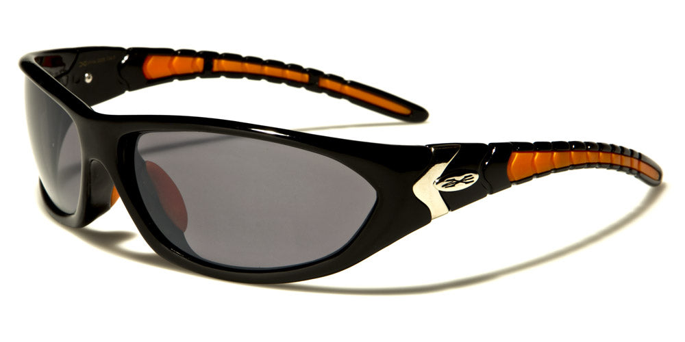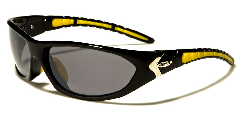 Brilliant color combinations and a fancy shape and look make these sunglasses stand out in any crowd and demand attention wherever you go. Made for men by X-Loop, the shades are great for sports or any other demanding outdoor activity. The frame is made of strong plastic and has an inward curve for a tight fit. The arms curve downward as they flow to the ears, and they feature a cool ribbed texture pattern in various colors.