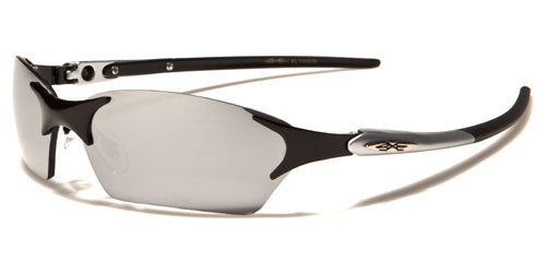 Sleek and aerodynamic, these great shades for men are made by X-Loop and are designed for active use. The frame is made of metal, and the arms are plastic, lightweight and easy to wear, but also strong and durable to hold up under tough conditions. The arms have an inward curve that grips your head and keeps the shades fitted firmly. The X-Loop logo is seen on the side in silver and black. The lenses have a mirror finish that reflects UV rays and gives you excellent privacy. Purchase these single-color glasses in quantity of 12 pairs per box.
