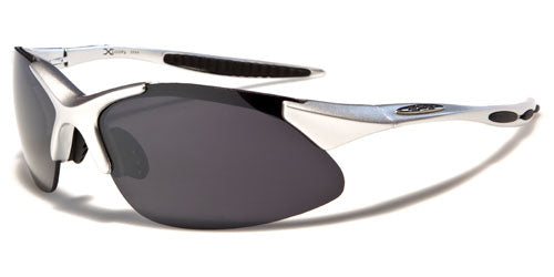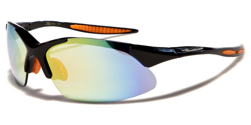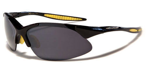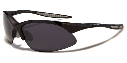 Dark and mysterious-looking with a wraparound shape, these sweet sunglasses by X-Loop are made for active men who want to look good and not worry about their eyes. The frame is made of plastic, designed to be durable and strong with a lightweight feel and an easy fit. The arms come off the temples and flow back to the earpieces with extra pads for better grip. The lenses are dark and have padded nose pieces in the middle.