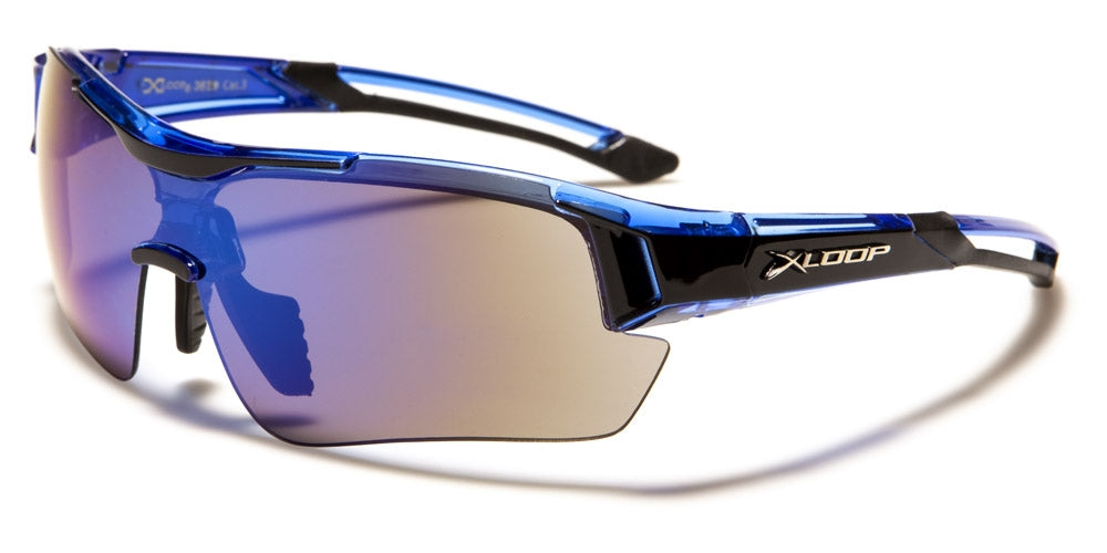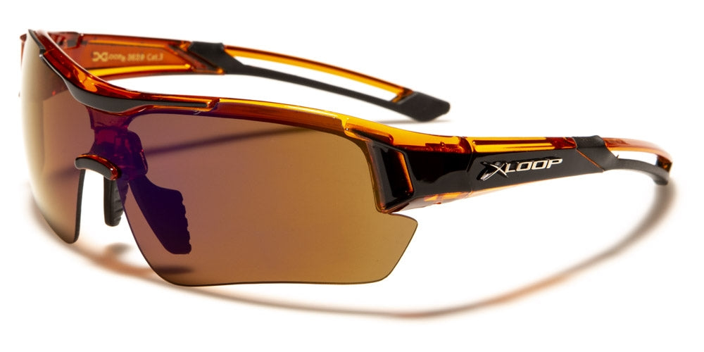 Offering an ultra-cool appearance, these X-Loop wrap-around men's sunglasses are designed with a semi-rimless, wrap around frame for comfort and durability. This also stops the sunglasses from falling when the wearer is going about his daily tasks. These shades are a perfect accessory for numerous purposes, including competing in sporting activities and driving in bright conditions. Our stylish sunglasses have been fitted with mirrored UV400 lenses to offer protection against glare and harmful UVA and UVB rays. Sold in increments of twelve, please note these packages come in an array of the color options above.